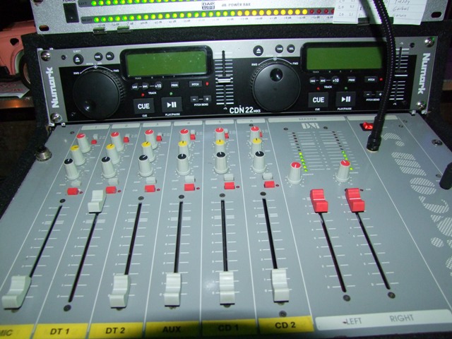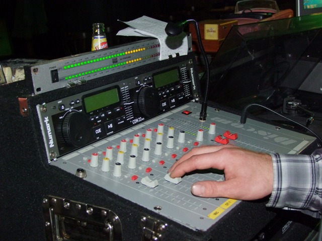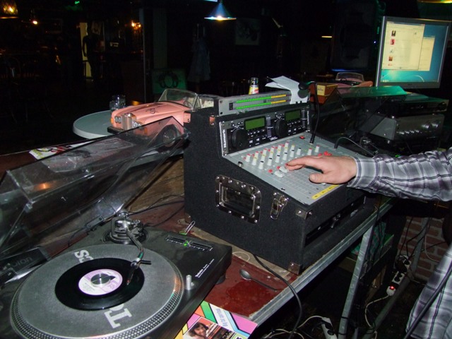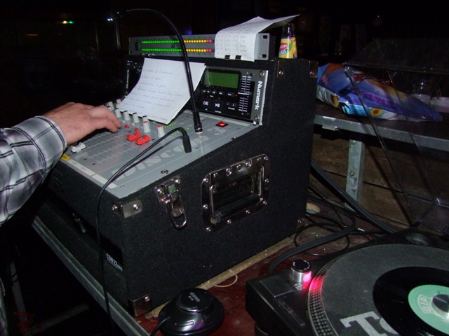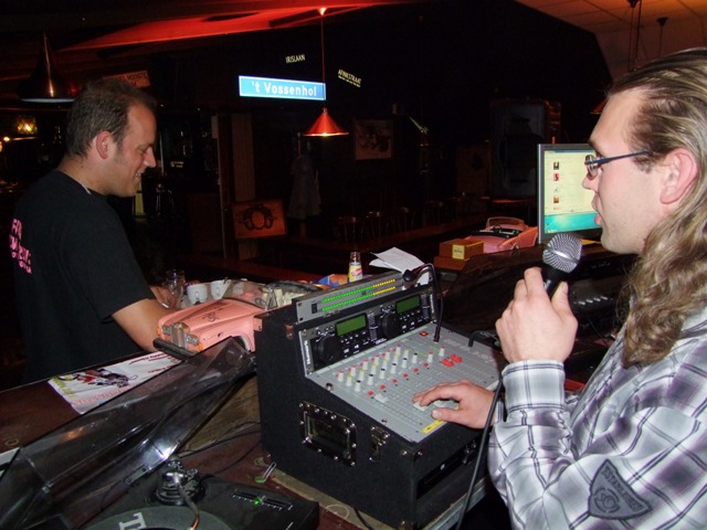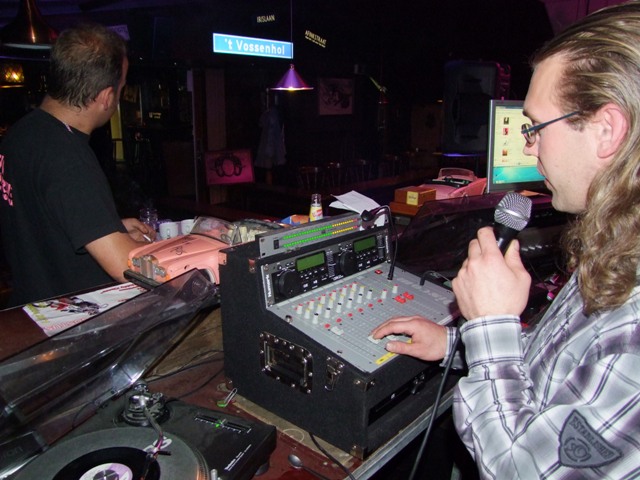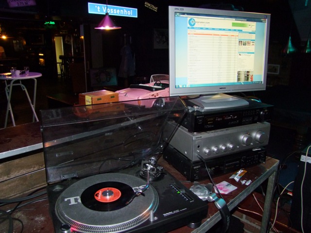 En van dat spul staat er genoeg en het wordt afgespeeld door 2 platenspelers van Technics de Sl1210mk2 met er tussenin een mengpaneel die je niet zo vaak ziet bij piraten namelijk, een D&R Discom 3.