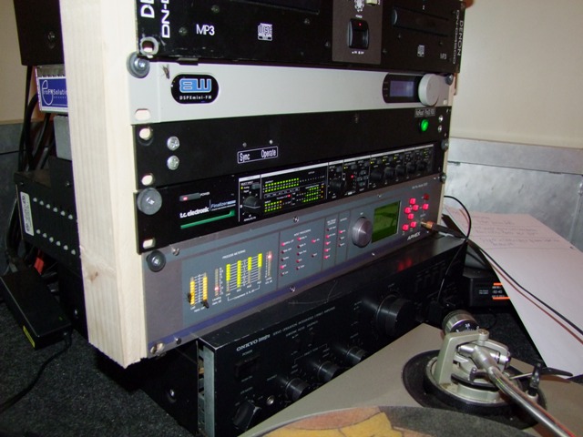Wat apart is de processing. Veel heb ik al gezien maar niet deze processor. Het is een Aphex Fm Pro 2000 met een TC Electronics Finalizer ervoor en als mengpaneel staat er een Dateq LPM 7,3.